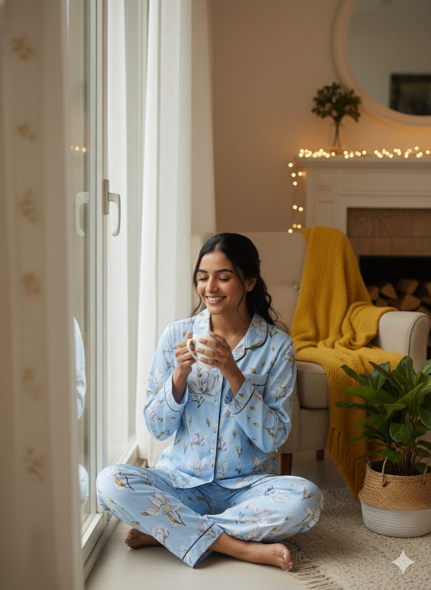 Elevate your sleeptime with our collared cotton nightsuit — soft, breathable, and effortlessly chic for all-night comfort and style.