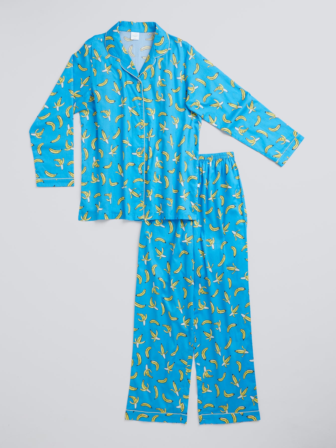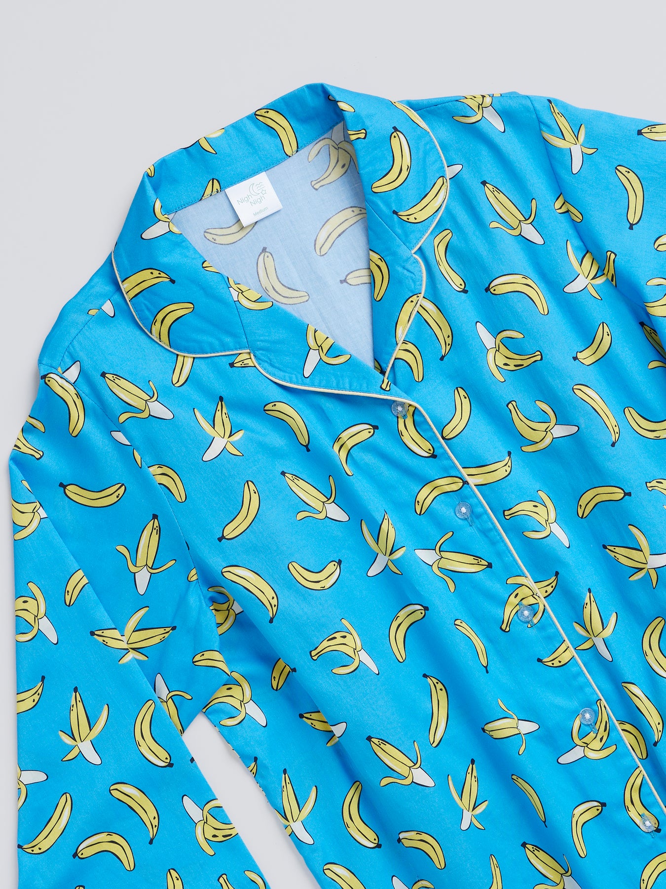 Add a pop of fun to your nights with our playful banana print nightwear. Bright, bold, and bursting with cheer, this print is made for those who love a touch of joy and happiness added to their dreams. Crafted in soft, breathable fabric — it’s comfort with a fruity flair!"