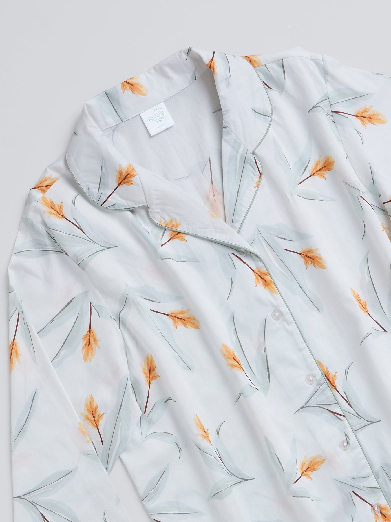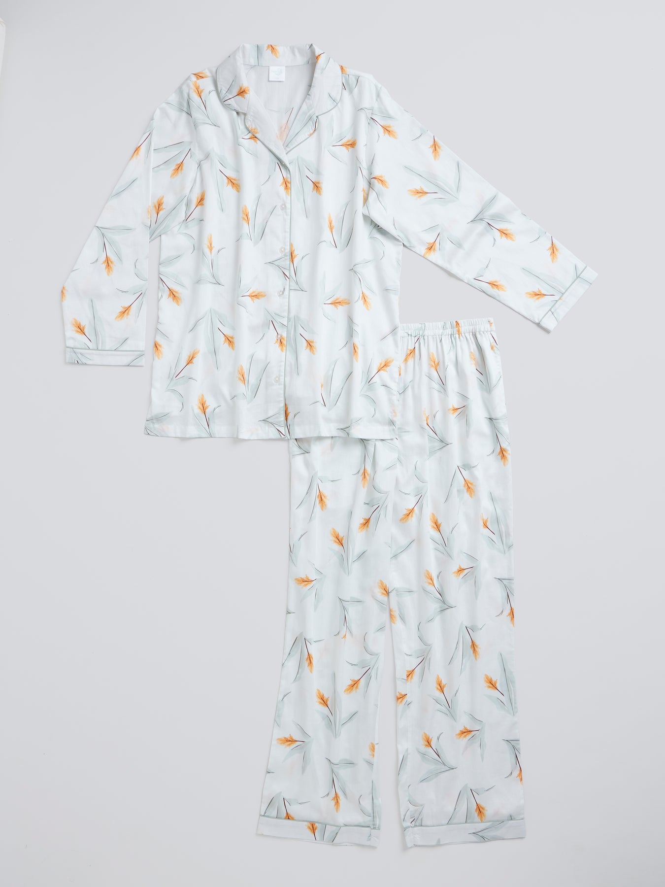 Bask in the beauty of understated luxury with our exquisite orange floral print nightwear. Delicate lily blooms with muted sage leaves create a serene, sophisticated aesthetic. Crafted from premium, ultra-soft fabric, this design blends comfort with grace — perfect for those who cherish elegance even in their moments of rest."