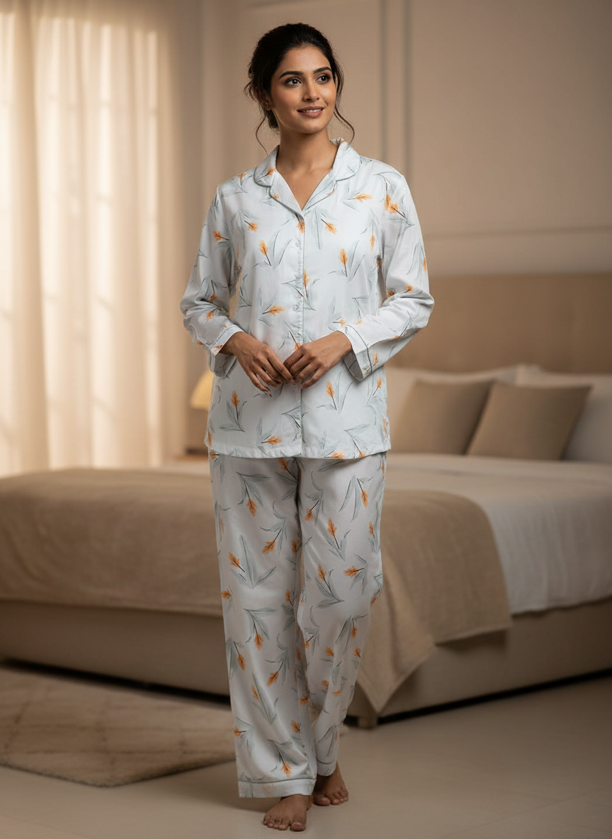 Elevate your sleeptime with our collared cotton nightsuit — soft, breathable, and effortlessly chic for all-night comfort and style.