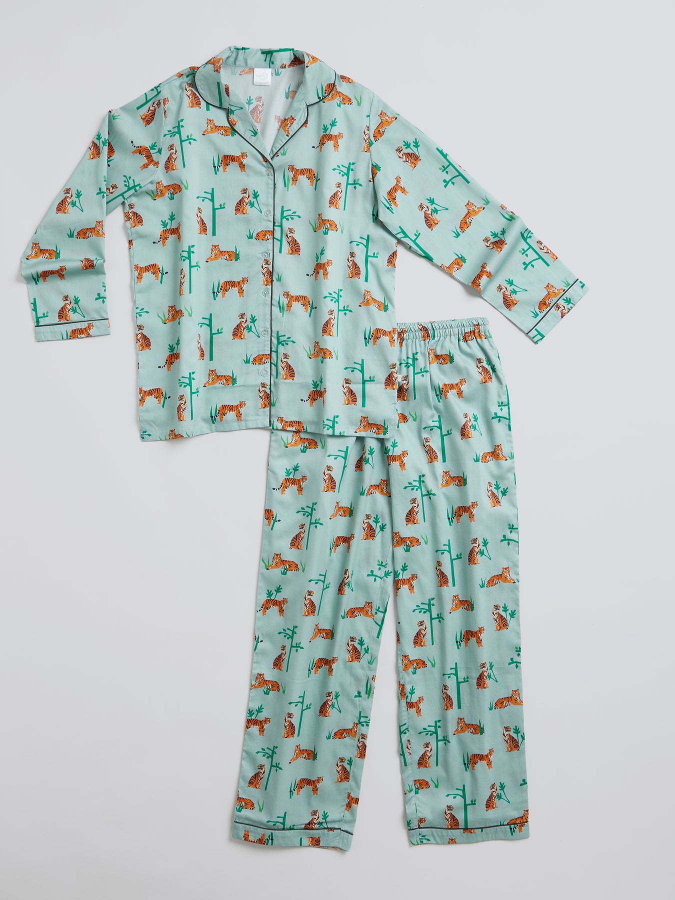 Unleash your wild side in our tiger print nightwear with a sense of quiet confidence. This design blends bold stripes with calm tones — perfect for those who dream with courage and wake with power. "